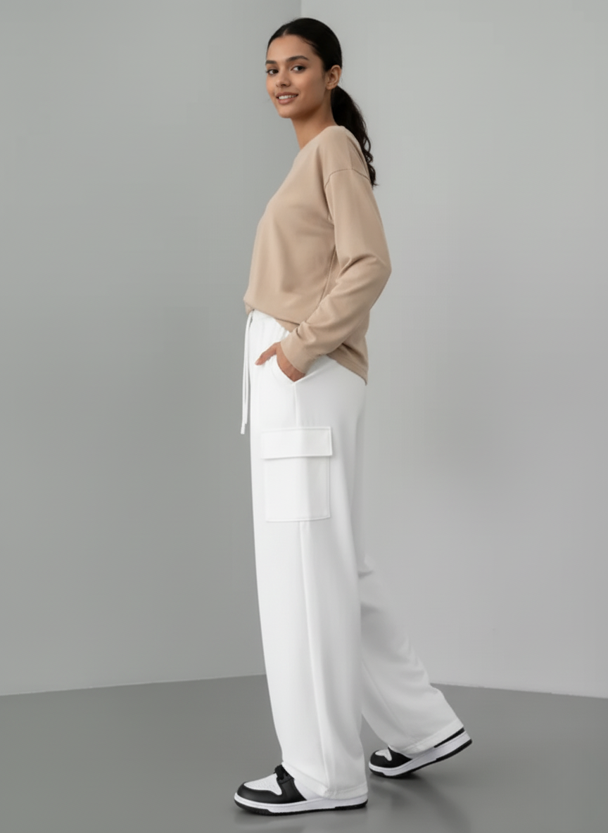 PURE WHITE HIGH WAISTED CARGO SWEATPANT
