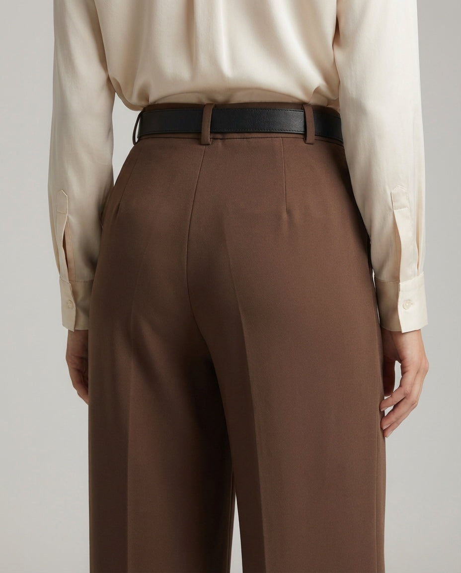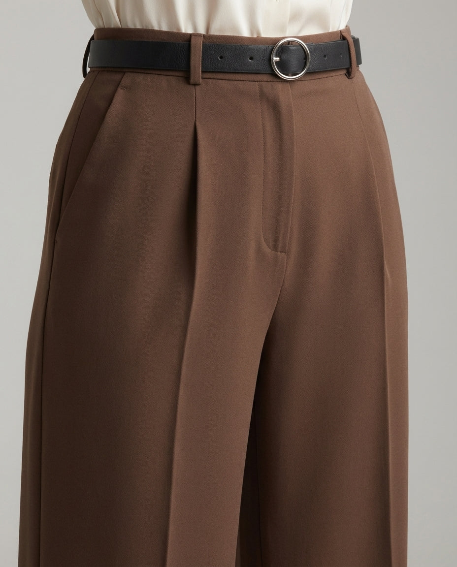 Tailored Wide Leg Pants - Brown