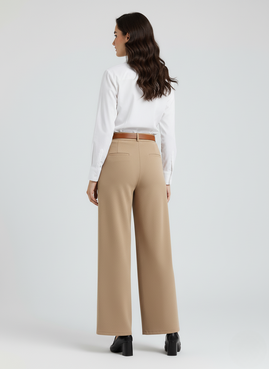 Refresh your wardrobe with our Tailored Wide-Leg Pants, featuring a high waist and a smooth, flowing shape. Stylish and comfortable, they’re perfect for both work and casual outings. Pair them with heels for a smart office look or keep it simple for an easy everyday style.