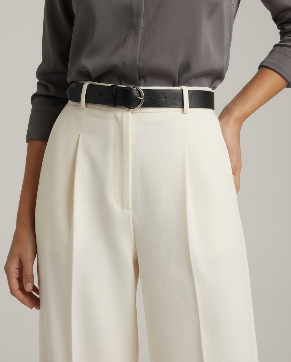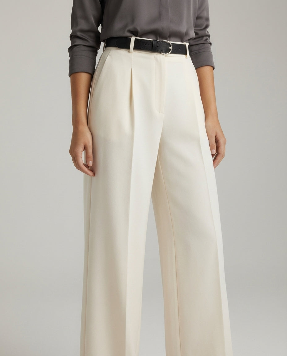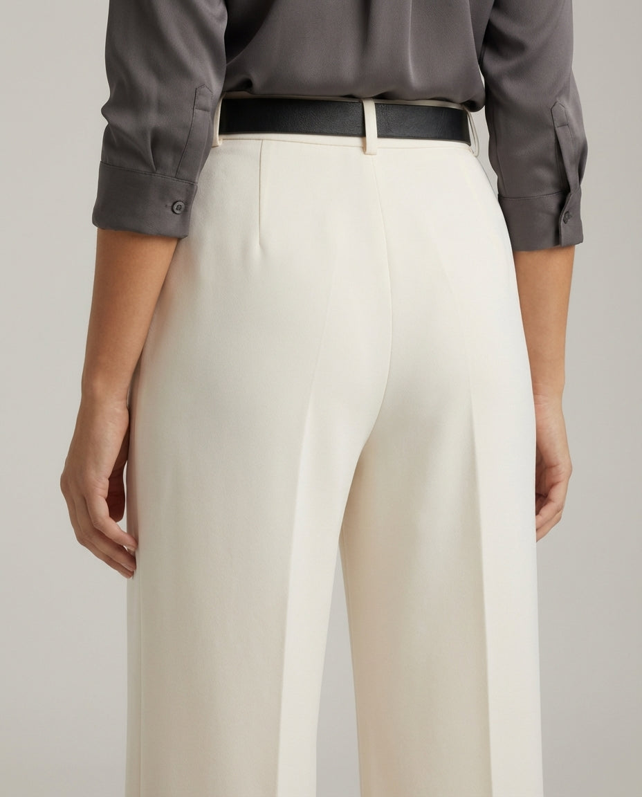 Refresh your wardrobe with our Tailored Wide-Leg Pants, featuring a high waist and a smooth, flowing shape. Stylish and comfortable, they’re perfect for both work and casual outings. Pair them with heels for a smart office look or keep it simple for an easy everyday style.